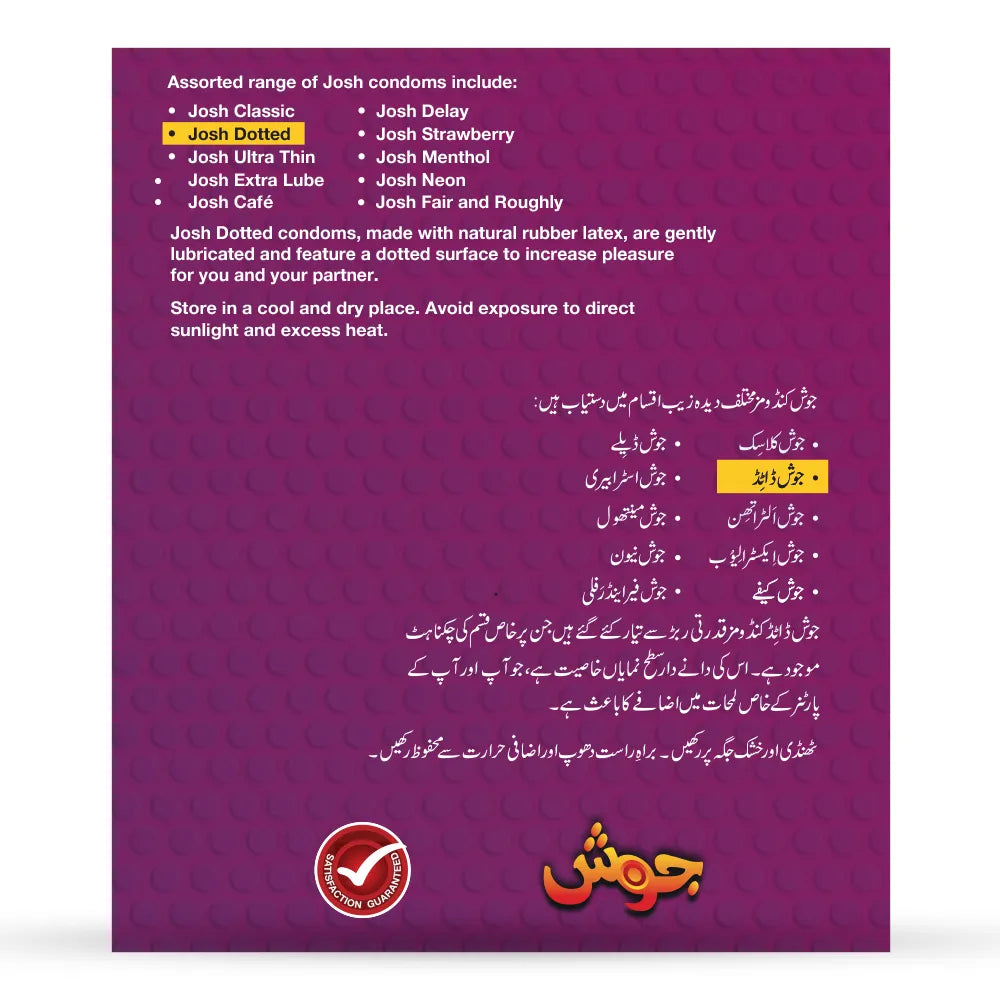 More texture, more excitement. Josh Dotted Condoms heighten pleasure with raised dots that intensify every touch.